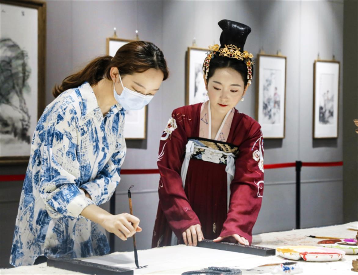 而在主楼四楼,摆好了书案,请游客现场挥毫,最后盖上黄鹤楼印章,在此留下墨宝的游客,还可以将游玩黄鹤楼的欢乐与体验“印”上带走,永远珍藏。