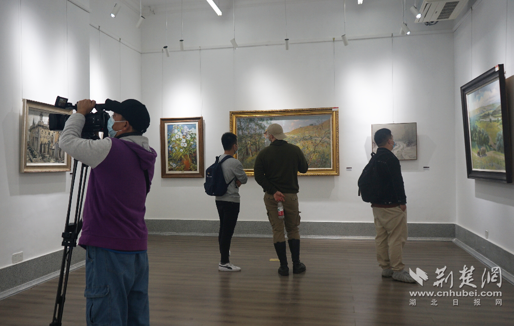二楼展厅以油画、当代艺术作品为主。俄罗斯功勋艺术家的大幅油画令人震撼;国内艺术家眼中的黄鹤楼、武汉关、长江大桥、铜人像、昙华林,呈现出亲切、温暖的“武汉印象”;体现艺术与现代科技结合的BOE电子画屏,展现了国外艺术家有关个体、群体记忆的影像作品,让人回味沉吟。