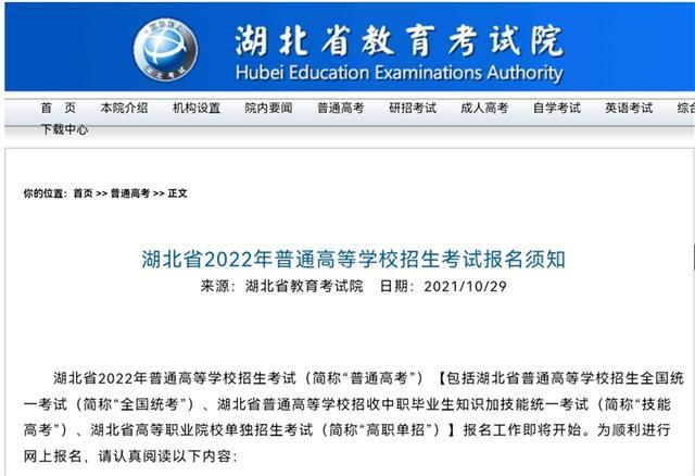 湖北日报讯(记者方琳、通讯员沈考)2022年湖北省普通高等学校招生考试(简称“普通高考”)报名工作即将在11月启动。为顺利进行网上报名,10月29日,湖北省教育考试院发布报名对象、条件等相关须知内容。