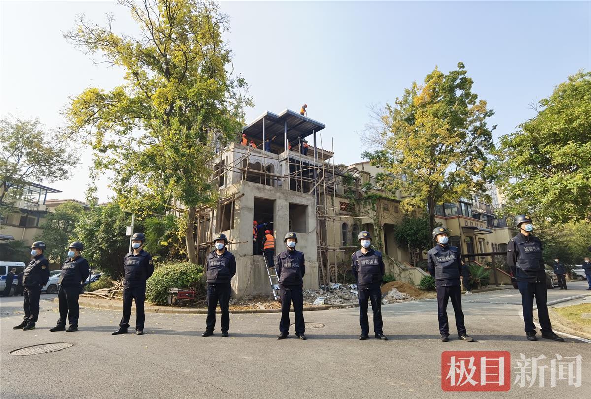 武汉市江夏区美加橘郡别墅小区一名业主在别墅上违建,被城管拆除。时隔半年,再次在原处违建并扩大了面积。28日至29日,江夏城管、江夏经开区联手强行拆除这处违建。