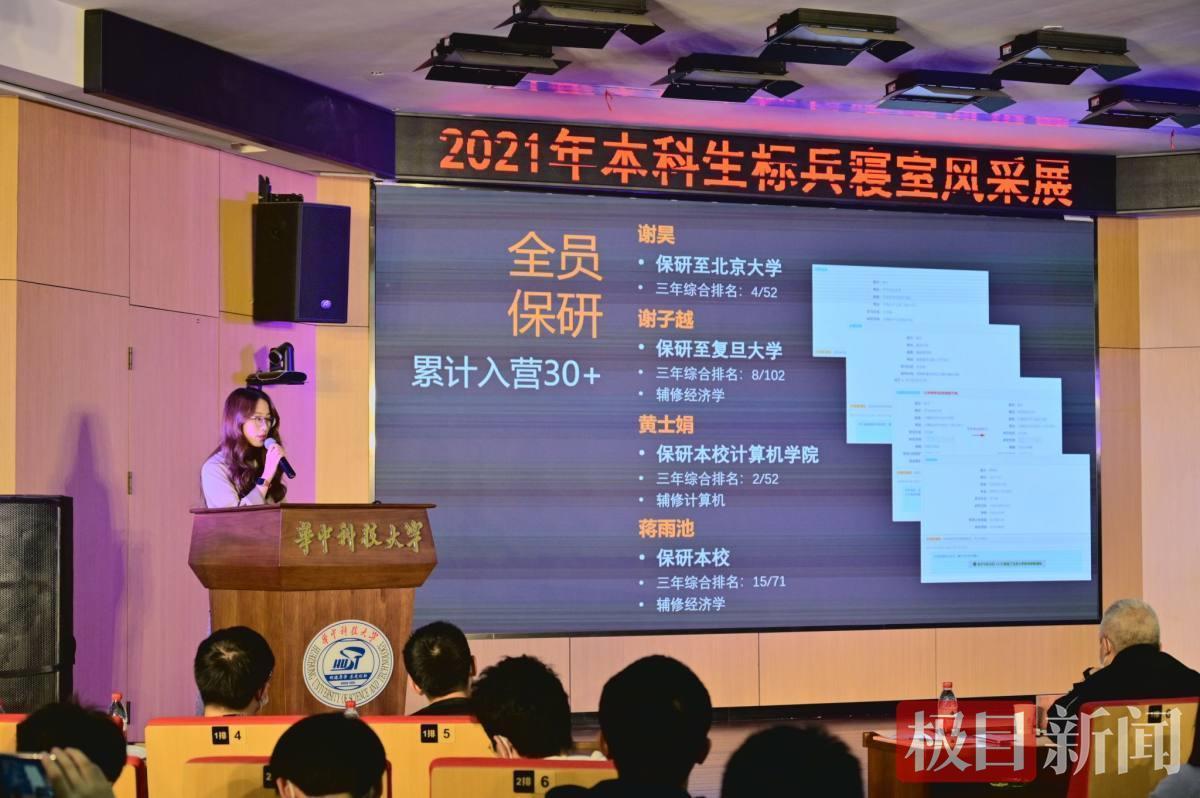 10月28日,华中科技大学举行2021年本科生标兵寝室风采展,24个学生寝室进行现场展示。全员保研、各类奖状拿个遍、学习绩点都是90分以上、奖学金加在一起高达10万多……活动现场上演“神仙打架”。现场,该校学生们还带来劲歌热舞、相声小品等各类才艺表演。