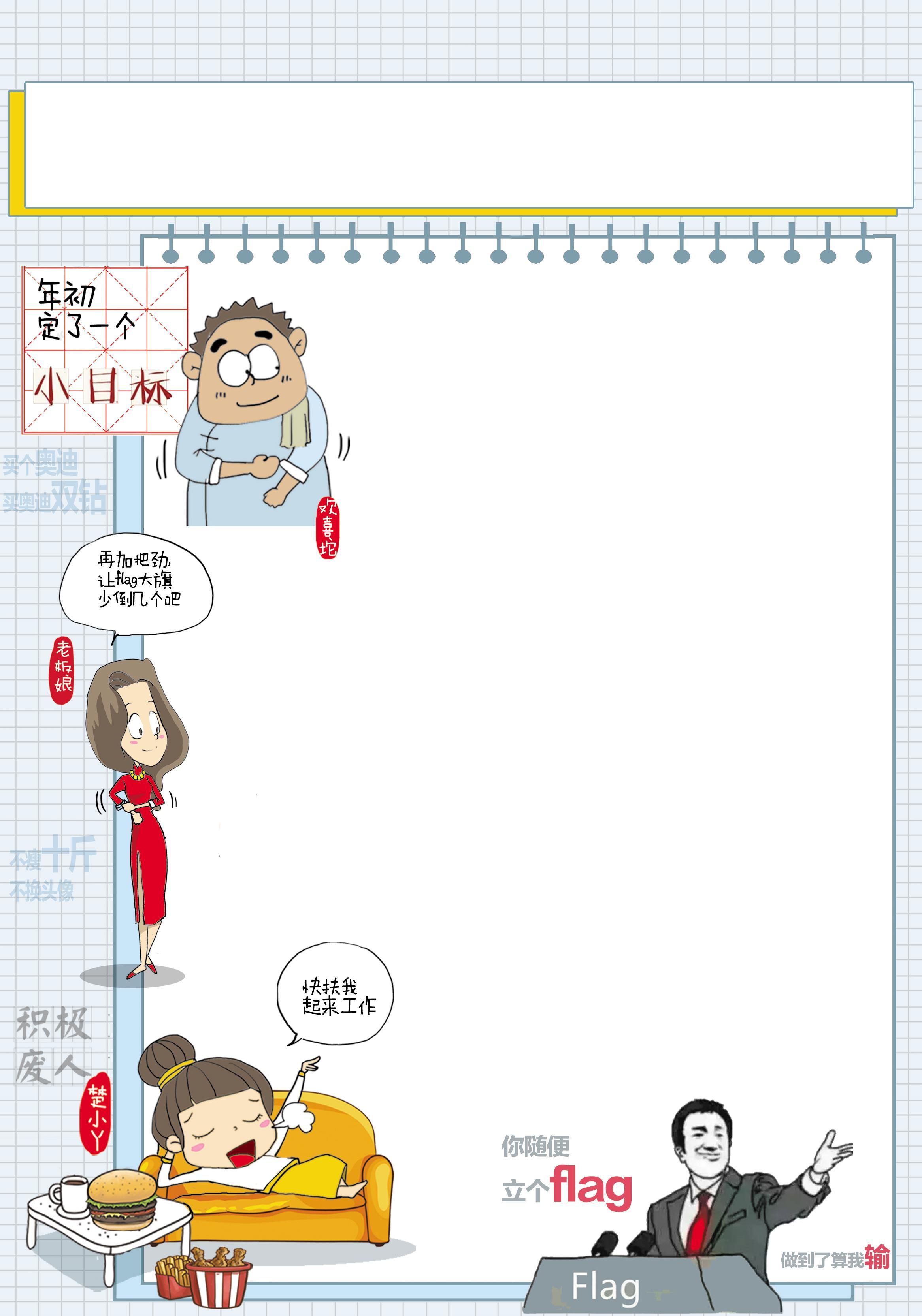 楚小丫:是啊,每到这个时候,大家都要说个悲伤的故事——年尾要算总账啦!年初时你信誓旦旦、野心勃勃、激情澎湃立下的flag大旗,它,还在?