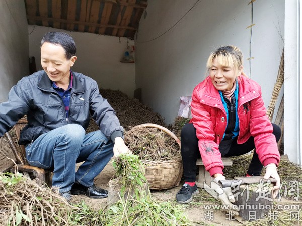 荆楚网(湖北日报网)讯(通讯员 许光泽 罗斌 杨本雷)10月26日,丹江口市石鼓镇盘道村村民孔林东夫妇在院内切割柴胡。