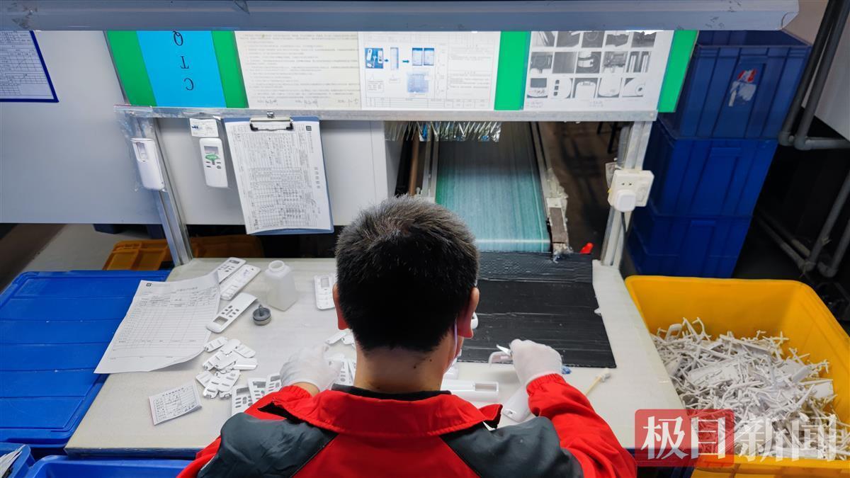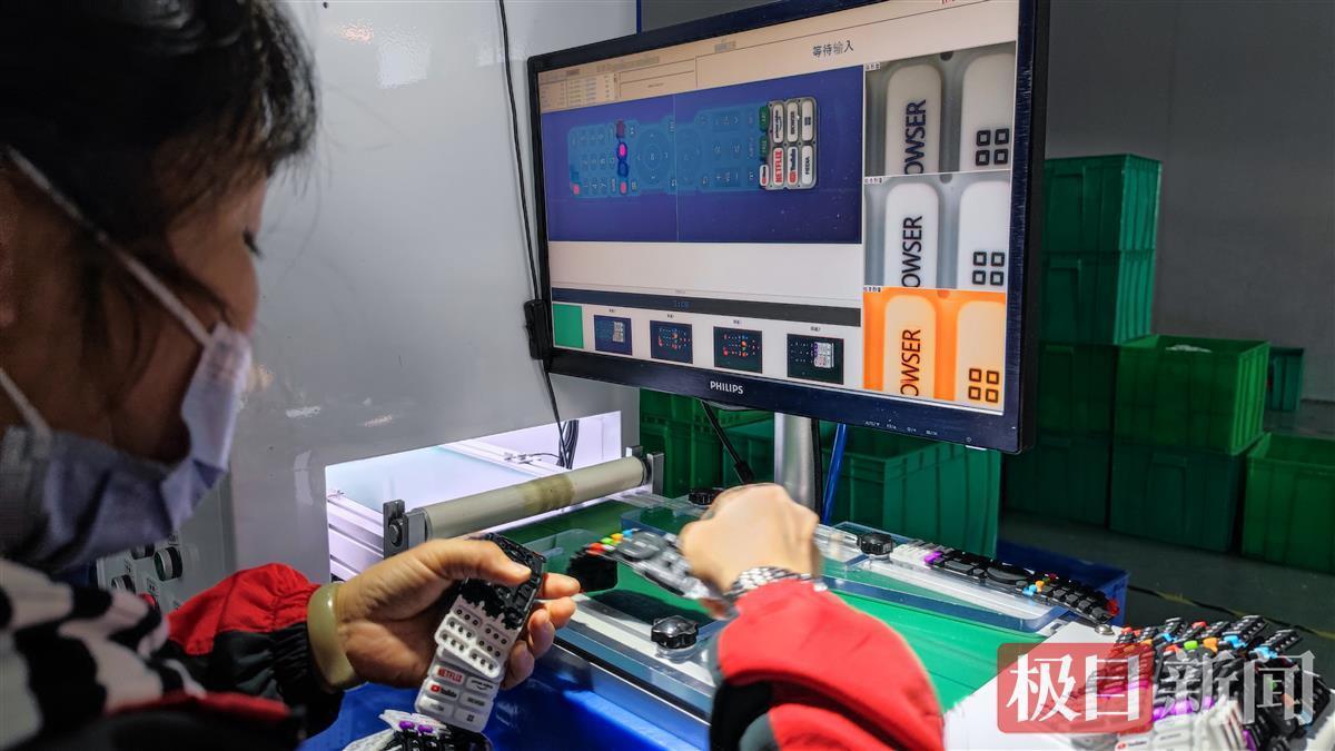 10月27日,极目新闻记者来到位于湖北咸宁市通山经济开发区的通山县星火原实业有限公司探访,在生产车间,一块块小米遥控器,在生产线上完成最后一道质检,即将从这里装车,销往全国各地。