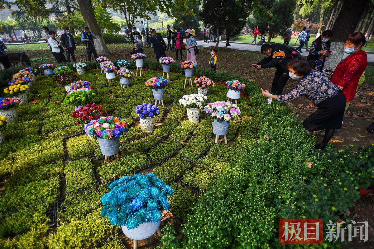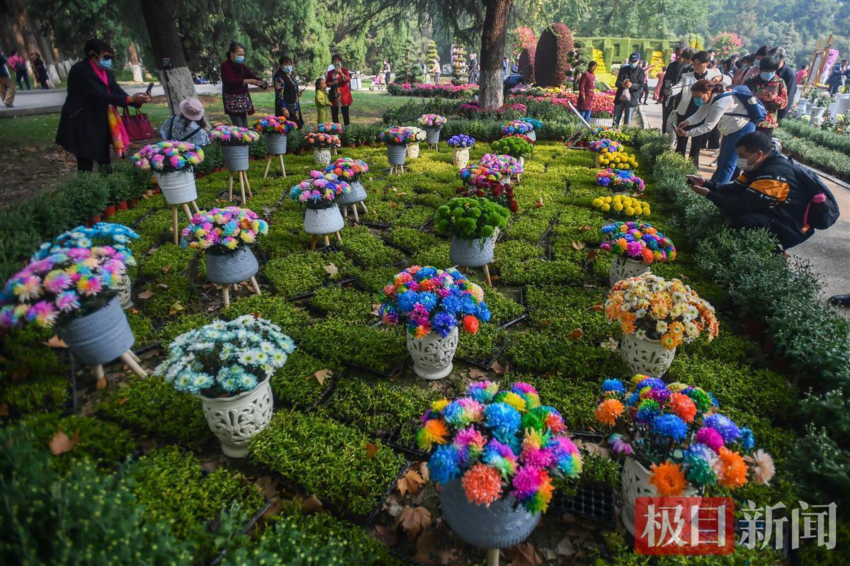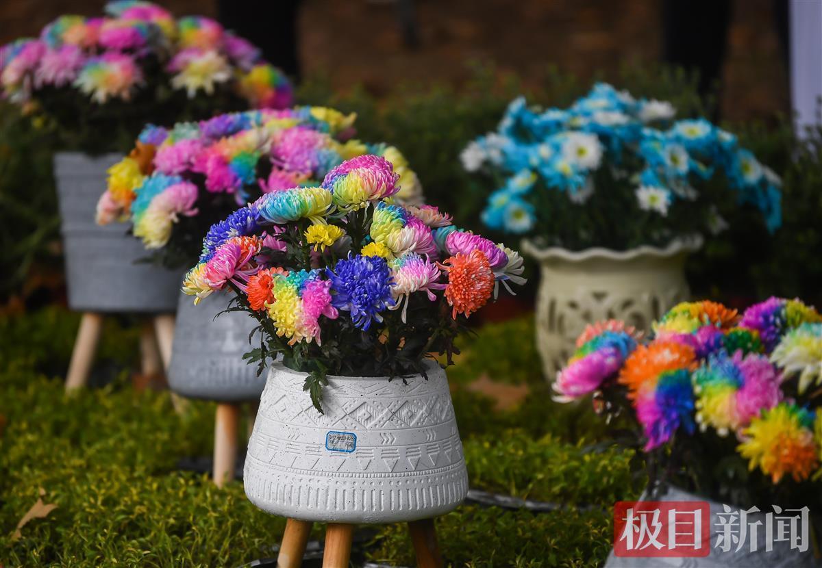 10月30日,汉口解放公园的菊展区,数十盆“炫彩菊”竞相开放,亮相武汉市第38届金秋菊展。