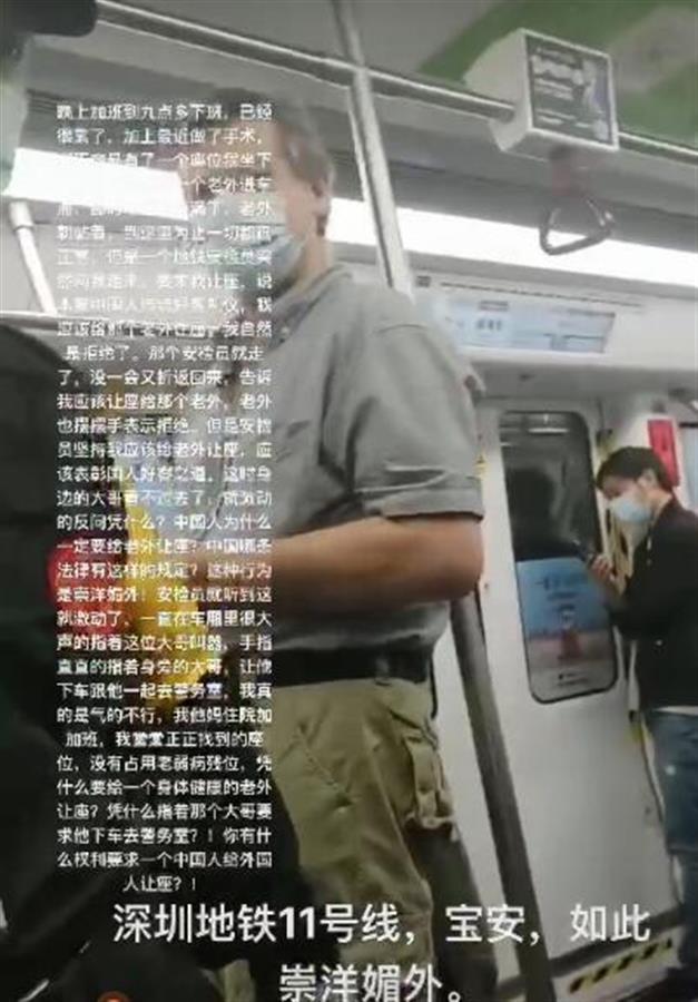 10月28日晚,深圳地铁11号线一名安全员强令一乘客给外国人让座,引发广泛关注(极目新闻此前报道)。10月30日,当事乘客陈先生告诉极目新闻记者,当事安全员已当面向他道歉,深圳地铁和安保公司的工作人员也向他道了歉。