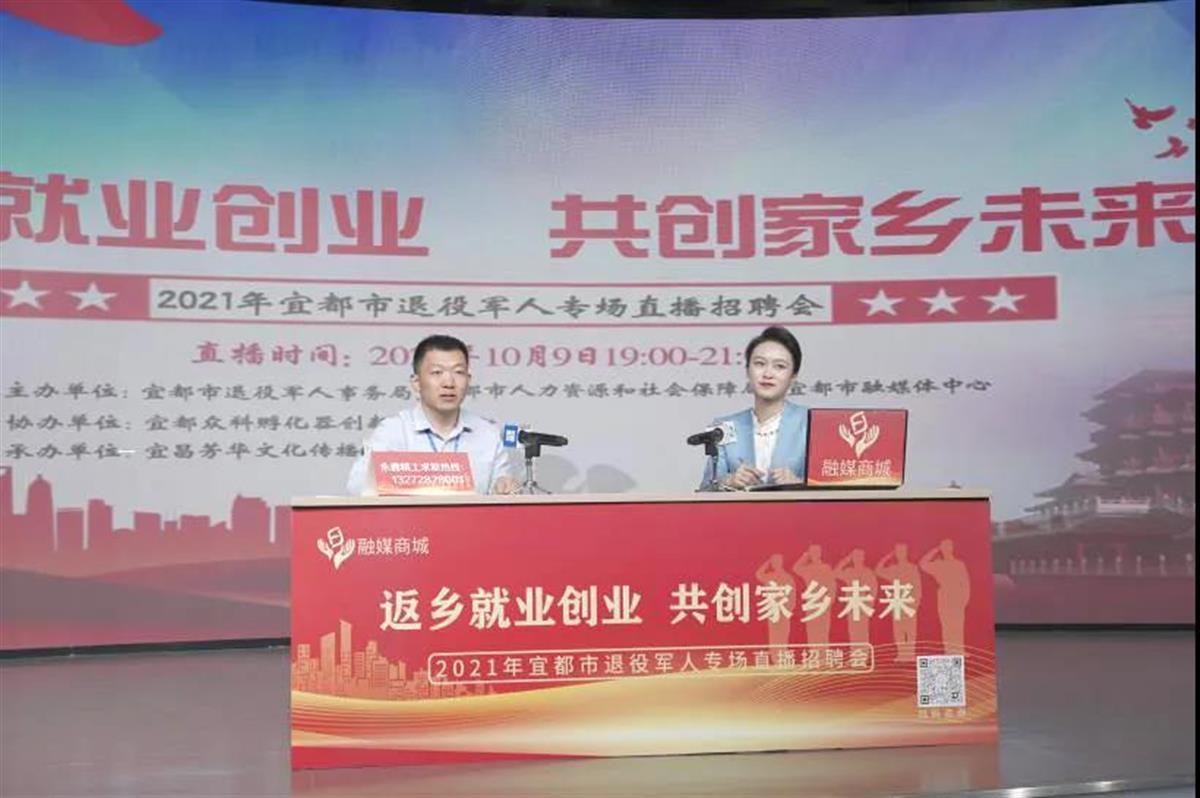 日前,宜都市退役军人事务局联合市人社局、市融媒体中心采取线上直播带岗方式,共同举办“返乡就业创业 共创家乡未来”退役军人专场招聘会。