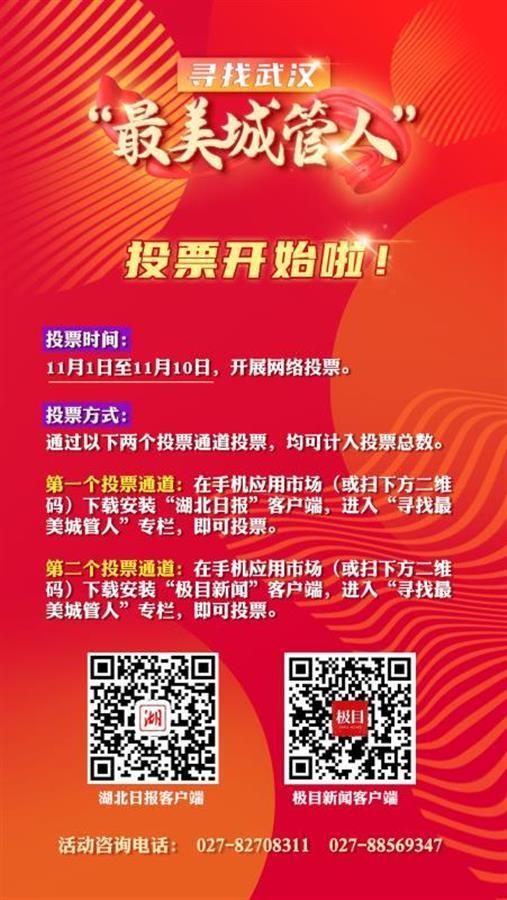 举办方介绍,从11月1日早上8时至10日晚上8时,开启网上投票环节,市民和网友可以通过湖北日报客户端、极目新闻客户端“寻找最美城管人”活动专栏投票。