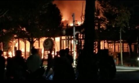 10月30日晚,位于浙江丽水仙都景区的缙云烧饼总店起火,木质结构的店铺火势凶猛,受损严重,所幸事故未造成人员伤亡。
