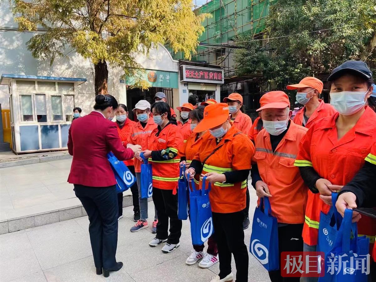 环卫工人是扮靓城市文明的重要角色,放鹰台社区联合兴业银行水果湖支行共同开展“兴公益”送温暖系列活动,通过为辖区“城市美容师”送关心、送关怀,持续营造关爱环卫工人、尊重环卫劳动、珍惜环卫成果的良好氛围。据了解,当天共慰问了百余名“城市美容师”。