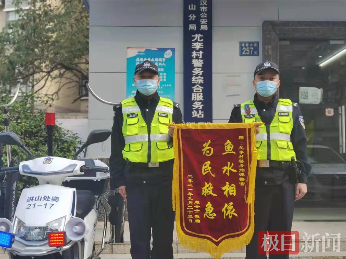 11月1日上午,武汉市洪山区公安分局尤李村警务站收到一面印有“鱼水相依 为民救急”的鲜红锦旗。原来,这是市民赵女士为了感谢辅警汪广一个多月前救助自己孩子专门快递送来的。