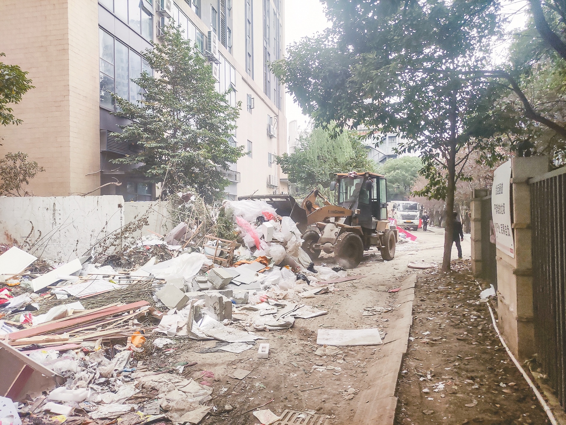 下午4时许,整条路面的垃圾被清理完毕。