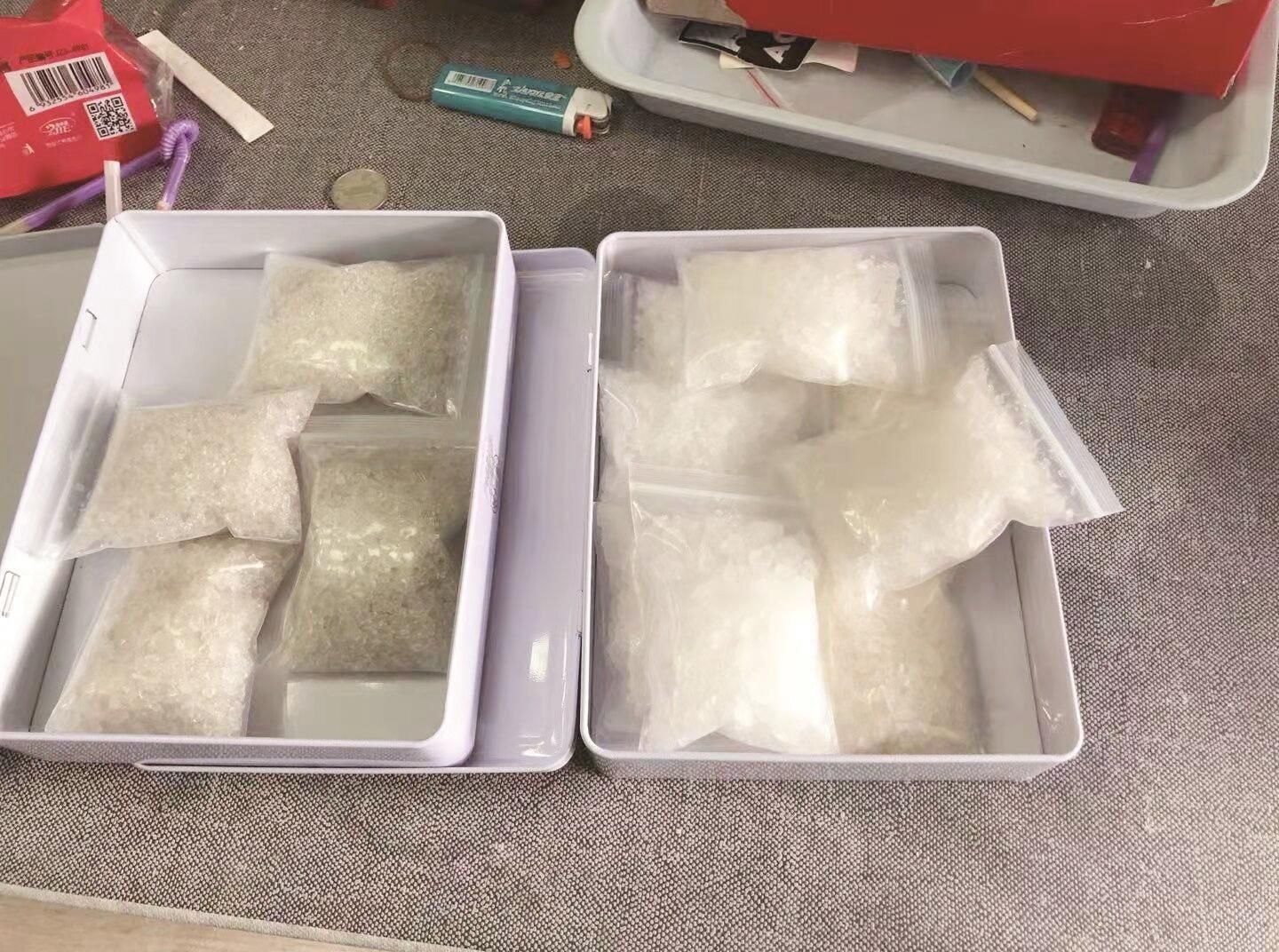 此时,守控在东沙花园小区的民警得知黎黎落网,冲进潭潭的出租屋,抓获潭潭及其2名马仔,又搜出1公斤毒品和若干现金。