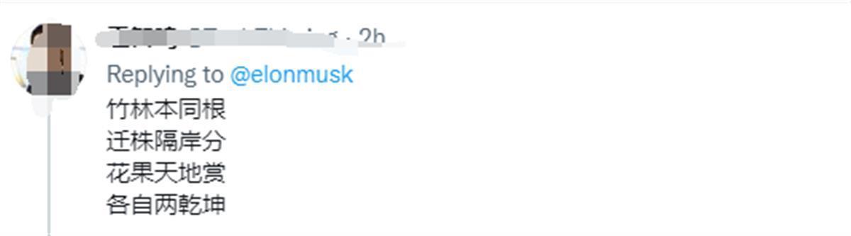 有网友认为马斯克可能是想引用“本是同根生,相煎何太急”来表示人们现在为了资源而互相伤害,以导致反目成仇。还有网友对此事用“各自两乾坤”来回应马斯克的“相煎何太急”。