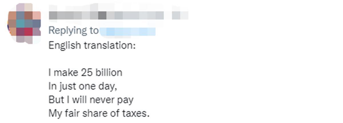 还有网友在马斯克的推文下解读他发这首诗的内心想法,觉得马斯克1天就可以赚250亿,但他永远都不会付他应该付的那份钱。