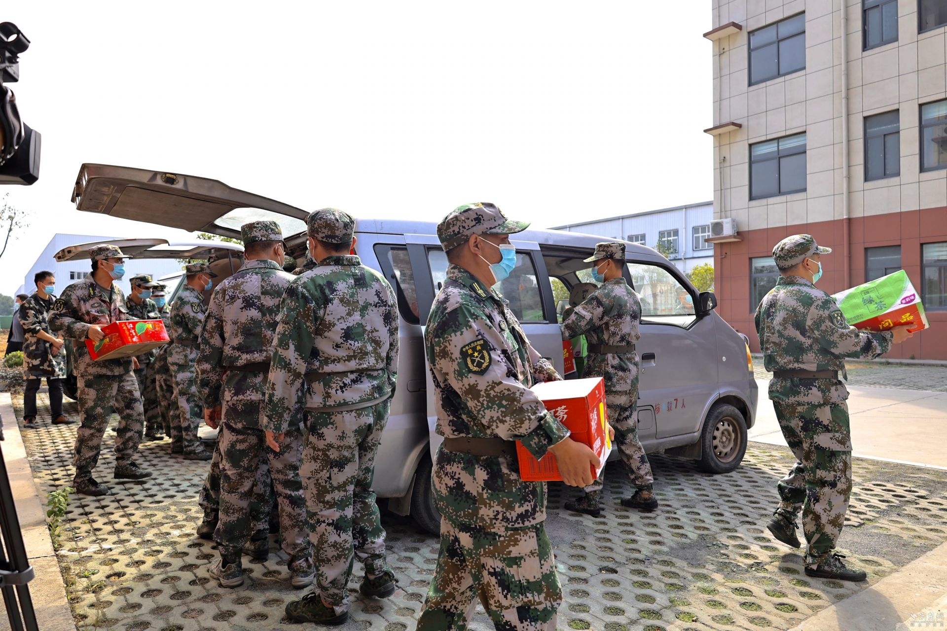 为民兵送上慰问品。胡臣 摄