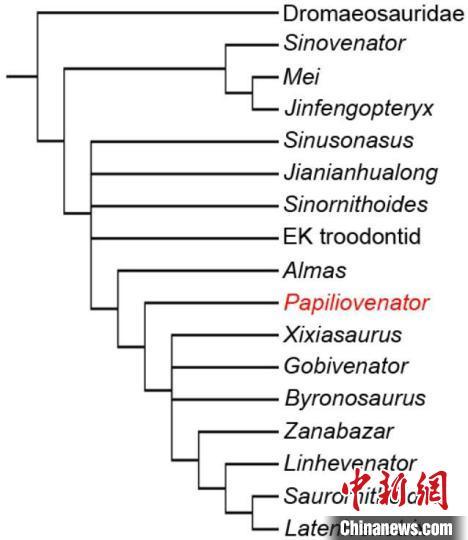 “内蒙古蝶猎龙”蝴蝶形的系统发育位置。 中科院古脊椎所 供图