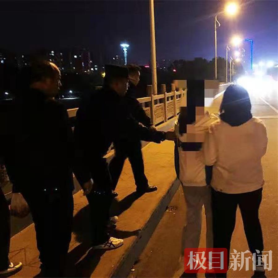 就在这时,一辆警车路过,车上的巡逻民警周俊毅发现这一异常情况,立刻下车,在辅警谢涛的协助下迅速将女孩紧紧拽住,将其从大桥护栏上拽了下来。