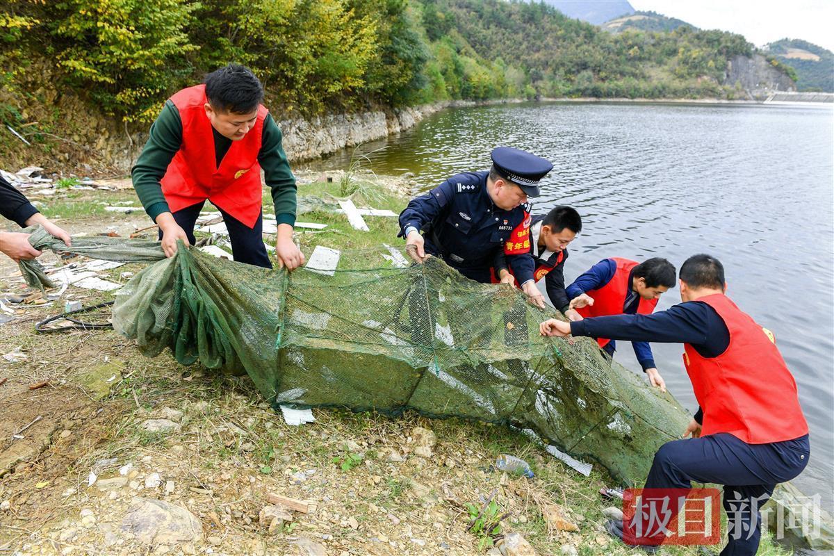 保康民警正在收缴地笼网。欧阳智慧 摄