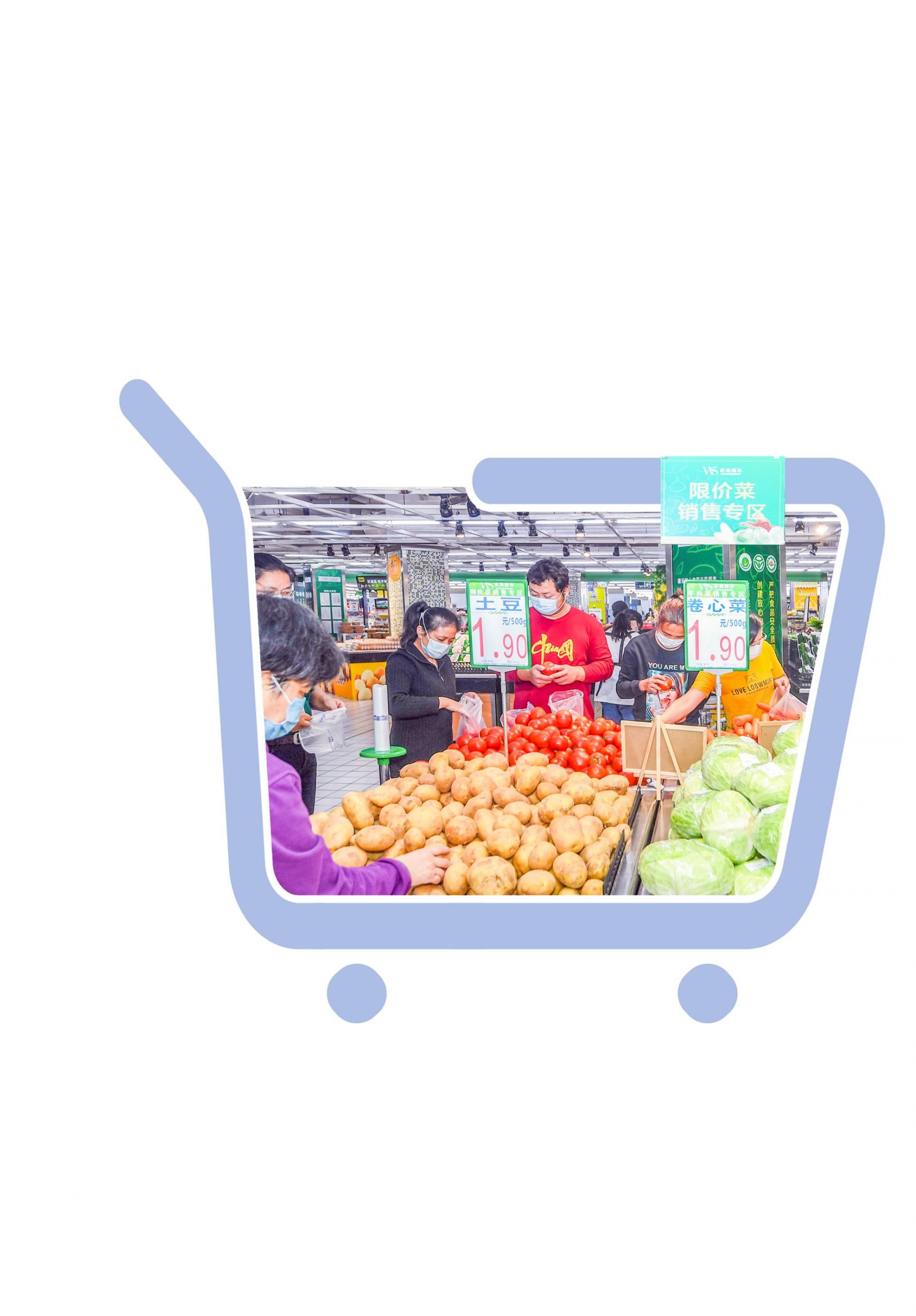 11月1日至15日,武汉将在三大商超140家门店投放限价菜,图为市民昨日在武商量贩店岳家嘴店选购菜品 楚天都市报极目新闻记者李辉摄