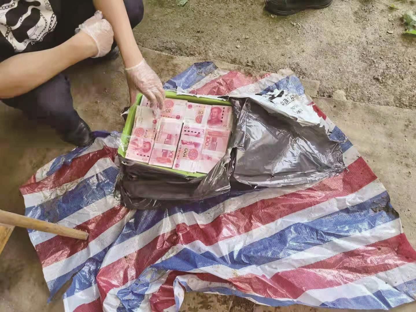 民警从菜地挖出90多万元赃款