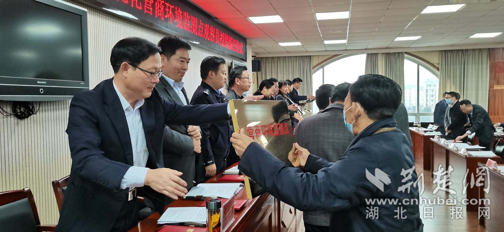 为10家优化营商环境监测点发牌。通讯员 张园园 摄