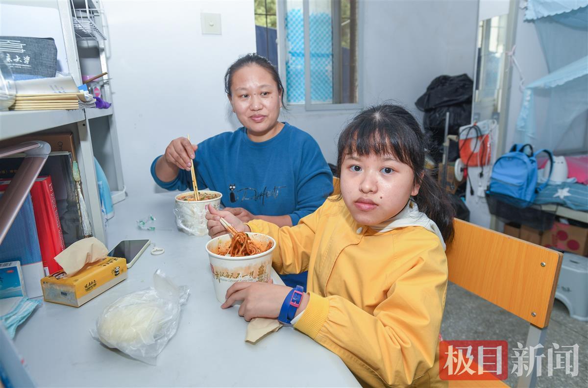 果然,学校不仅同意汤紫妍母亲在校内陪读,还为她们安排了专门的陪读寝室。“这是离教学楼和图书馆最近的一栋寝室,比我们班其他同学能节省10多分钟路程。”汤紫妍说。