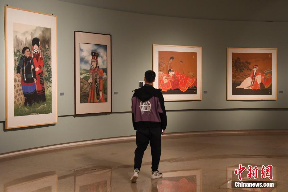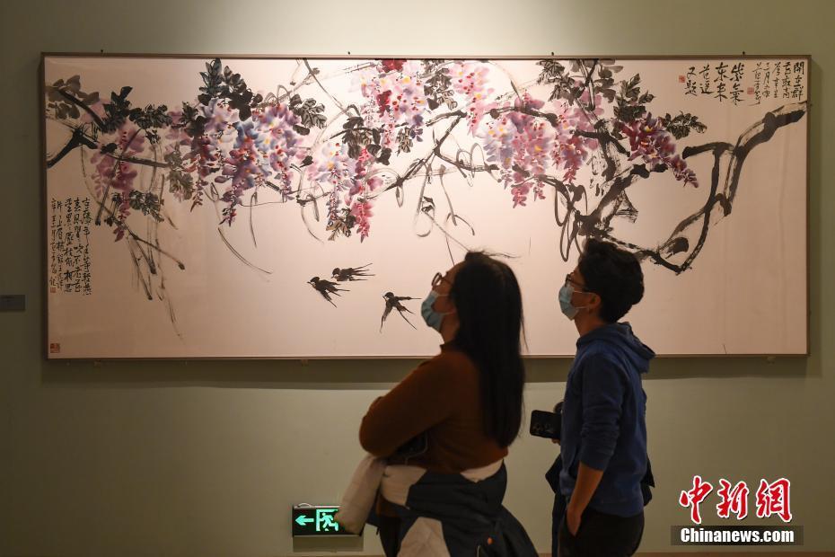 11月3日,参观者在位于北京的中国国家博物馆欣赏展出的绘画作品《开在群花最高层》。近日,“知行墨境——当代中国画名家邀请展”在国家博物馆展出,该展览共展出三十八位中国画名家代表作品近百件。 中新社记者 田雨昊 摄