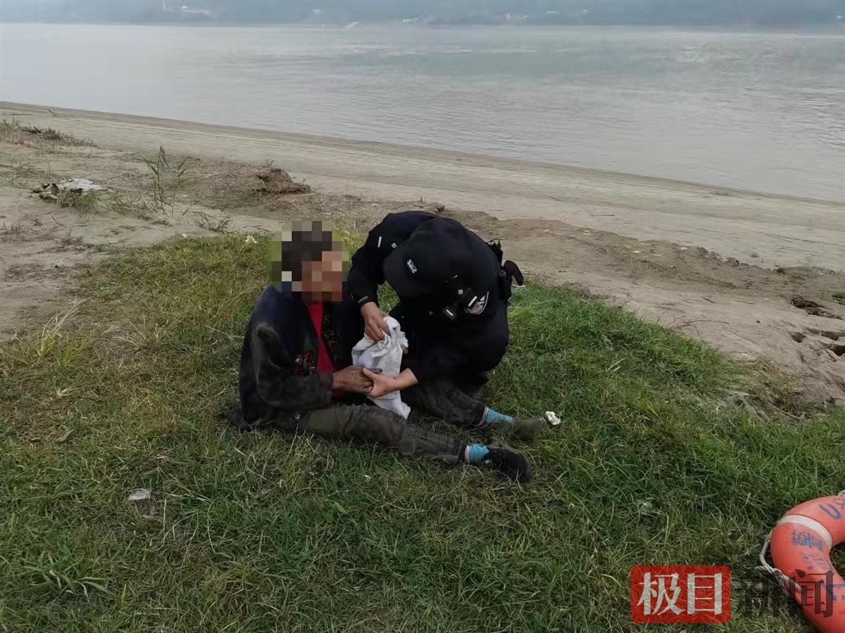 出警民警董嘉、罗雅学一边对该老人喊话劝阻安抚情绪,一边把握时机慢慢接近,成功抓住时机将其顺利带至安全地带。民警询问得知,老婆婆今年70多岁,武穴人,因琐事与家人发生争吵后,来到江边欲轻生。