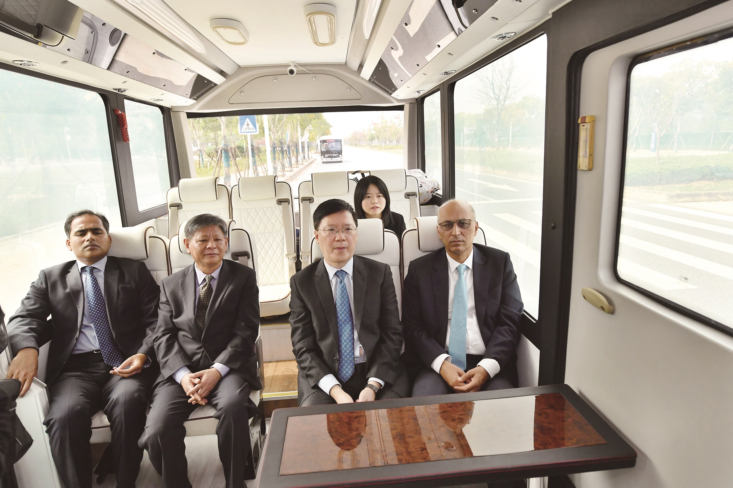 莫因·哈克大使(右一)试乘无人驾驶汽车
