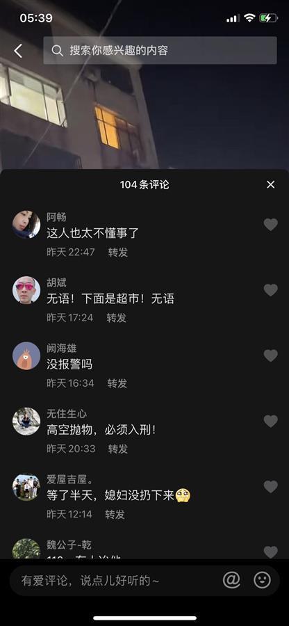 极目新闻记者获悉,事发地点为江西省九江德安县一超市门口,抛物的女子系楼上租户。超市附近一商户表示,2日晚上9时许,楼上的女子疑似跟爱人争吵,不停地往楼下扔东西。有人联系了房东,房东赶到后和其他热心的邻居上楼劝阻。但女子情绪失控,不听劝解。被扔地上东西越来越多,还出现了水壶、小家电,甚至是家具。有人担心安全,打电话报警。警察赶到后把女子带回派出所进行处理。