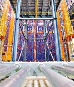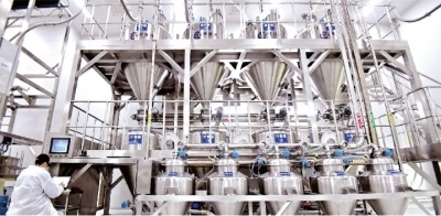 在第三层的上料区,物料经自动拆包进入混合釜,MES智能系统指挥生产全程。无尘操作,精确配比,完全混合。达到标准后,MES给机器发出指令,进入第二层转运和卸料工作。激光搭载料斗,将上层混合好的物料自动运输到卸料站,通过洁净管线到达一楼包装车间,密闭分装、赋码、封箱后通过提升机转运到仓库。立体仓库通过WMS系统进行管理,对接ERP和MES系统,实现货物出入库的智能化控制。7000多个货柜,可存储3000多吨货物,同时分设了阴凉库和常温库,以满足药品不同储存条件的要求。