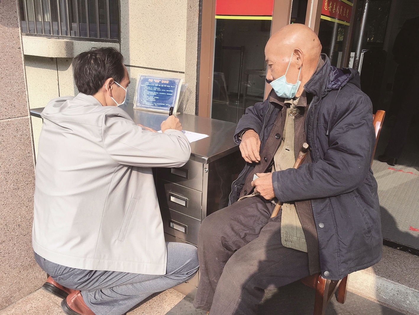 刘友朝站起身来,才觉得腿都有点麻了。他告诉老人,马上会将材料转到法院执行局,争取尽快维护他的权益。“谢谢你啊,我出门一趟不容易,这下全都办好了!”老人握住刘友朝的手连声道谢。