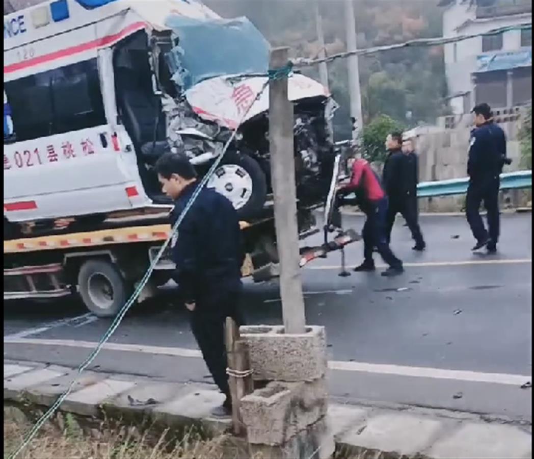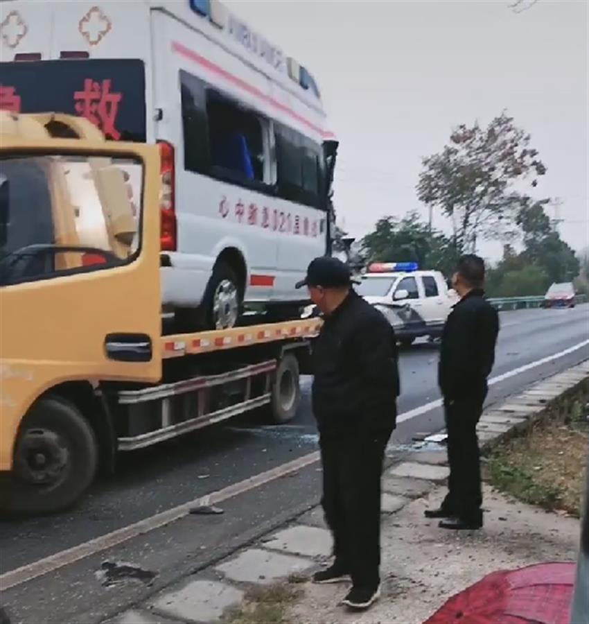 一位现场目击者告诉极目新闻记者,3日下午4时许,他驾车经过事发路段时看到,多名工作人员正试图将救护车转移至救援车辆上,现场还有一辆箱式货车,但受损情况并不严重。