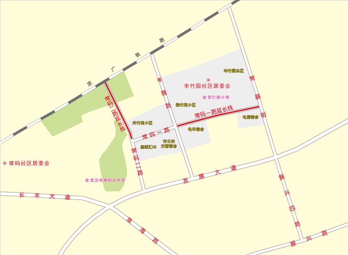 位于硚口区长丰街道辖区,东西走向,西起丰雅路,东至常藤街,长约316米,宽约15米。因该段道路为常码一路东向延长线,故名。延伸后,常码一路西起于常码二路,东止于常藤街,全长约481米,宽约15米。