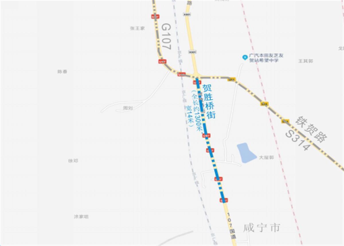 位于江夏区山坡街道辖区。 南北走向,北起107国道与314省道交汇处,南至江夏咸宁交接处。全长约1300米,宽约14米。沥青路面。因位于贺胜桥附近,故名。