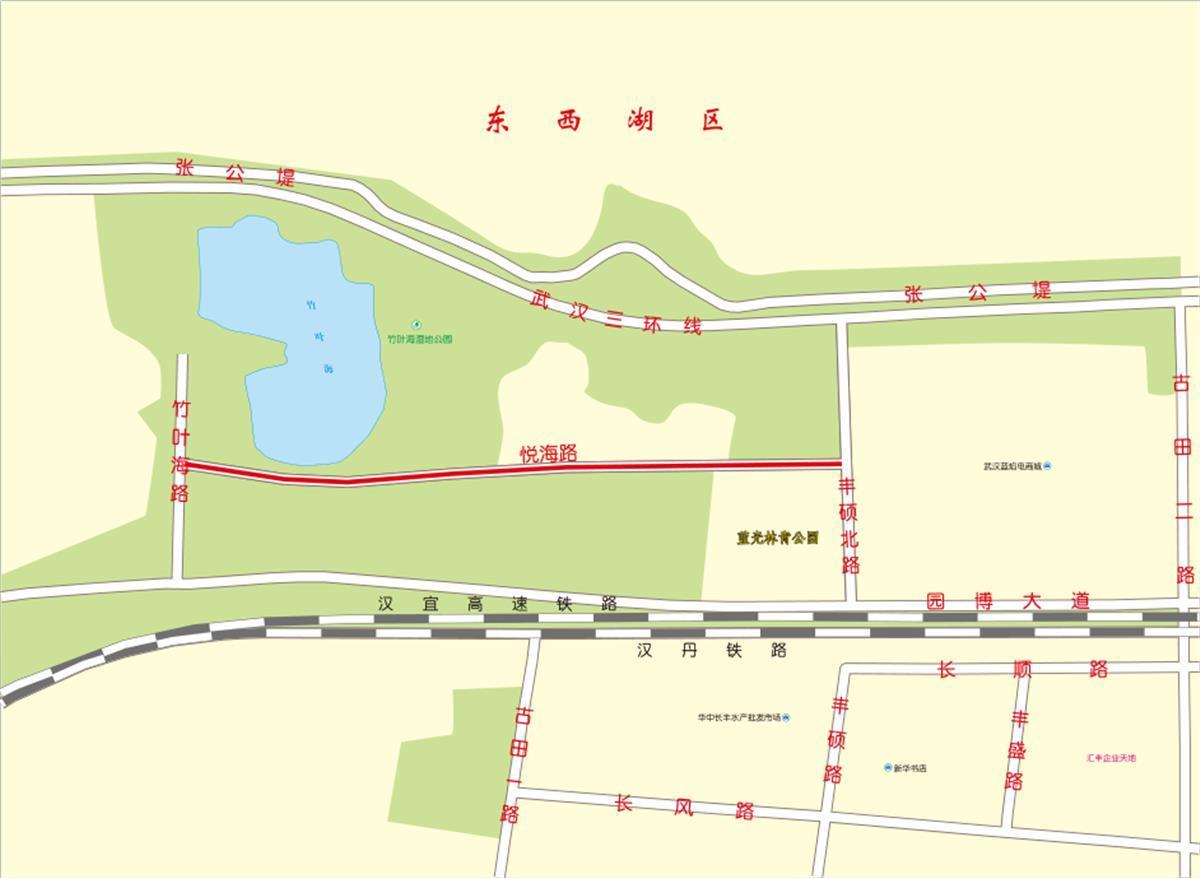 位于硚口区长丰街道辖区,东西走向,西起竹叶海路,东至丰硕北路,全长约1566米,宽约20—30米。因靠近竹叶海公园,且“悦”含喜悦、高兴等吉祥寓意,故名。