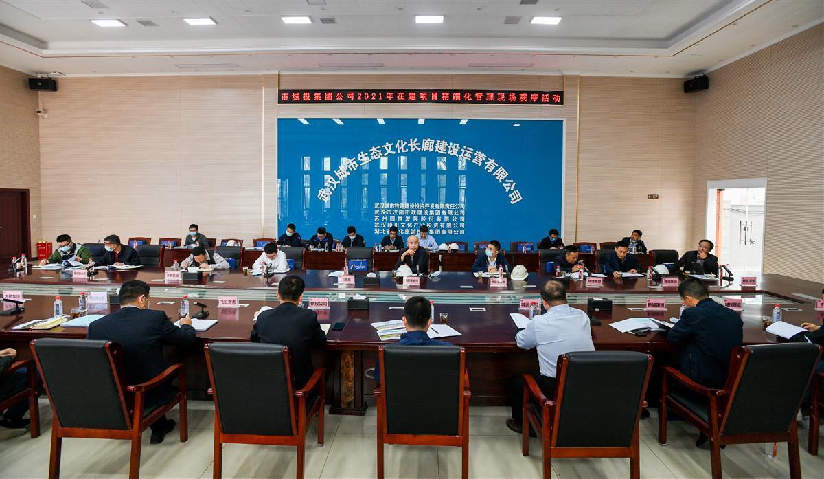 为进一步提升建设工程项目现场精细化管理水平,强化质量安全和文明施工标准化建设,11月2日,武汉市城投集团公司副总经理王彬、汪国圣率队来到武昌生态文化长廊项目开展精细化管理现场观摩活动。武汉市城投旗下的桥建集团、水务集团、誉城集团、临空投公司、新区公司、燃气集团、城运公司、停车场公司、新城国博、大桥集团、城投置业、信息管网、市政院等单位分管领导及部门负责人参加了现场观摩。