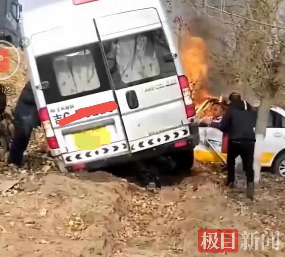 当地居民告诉极目新闻记者,事发时间为11月5日上午11时许,具体地址在公主岭市大榆树镇孙平房桥附近。他隔着很远就看见浓烟和火光,等走近了才知道是一辆小客车和一辆出租车相撞。出租车司机当场死亡,出租车上还有一名乘客死亡,另外还有人受伤。