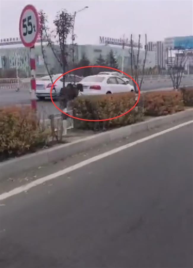 网传视频显示,车来车往的机动车道上,一辆白色私家车打着双闪,疑似用一根绳子拖着一匹马向前缓慢行进。对此,视频拍摄者称其是“开车遛马”。