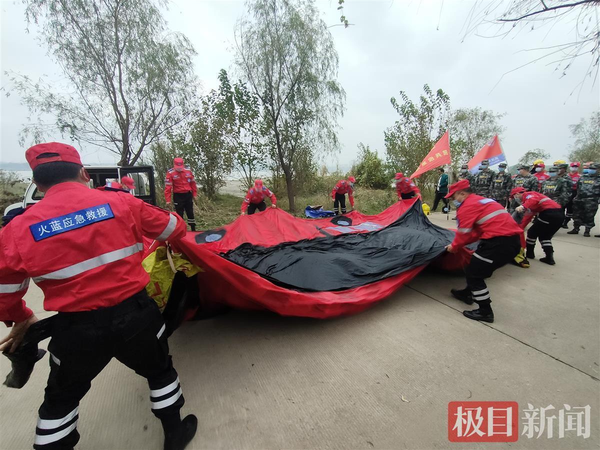 当天上午,来自洪山区武装部民兵应急连、洪山区杨春湖消防救援站和武汉火蓝应急救援队的近70名应急救援人员,赶赴天兴洲江滩轮渡码头附近,进行火场逃生与救援演练。