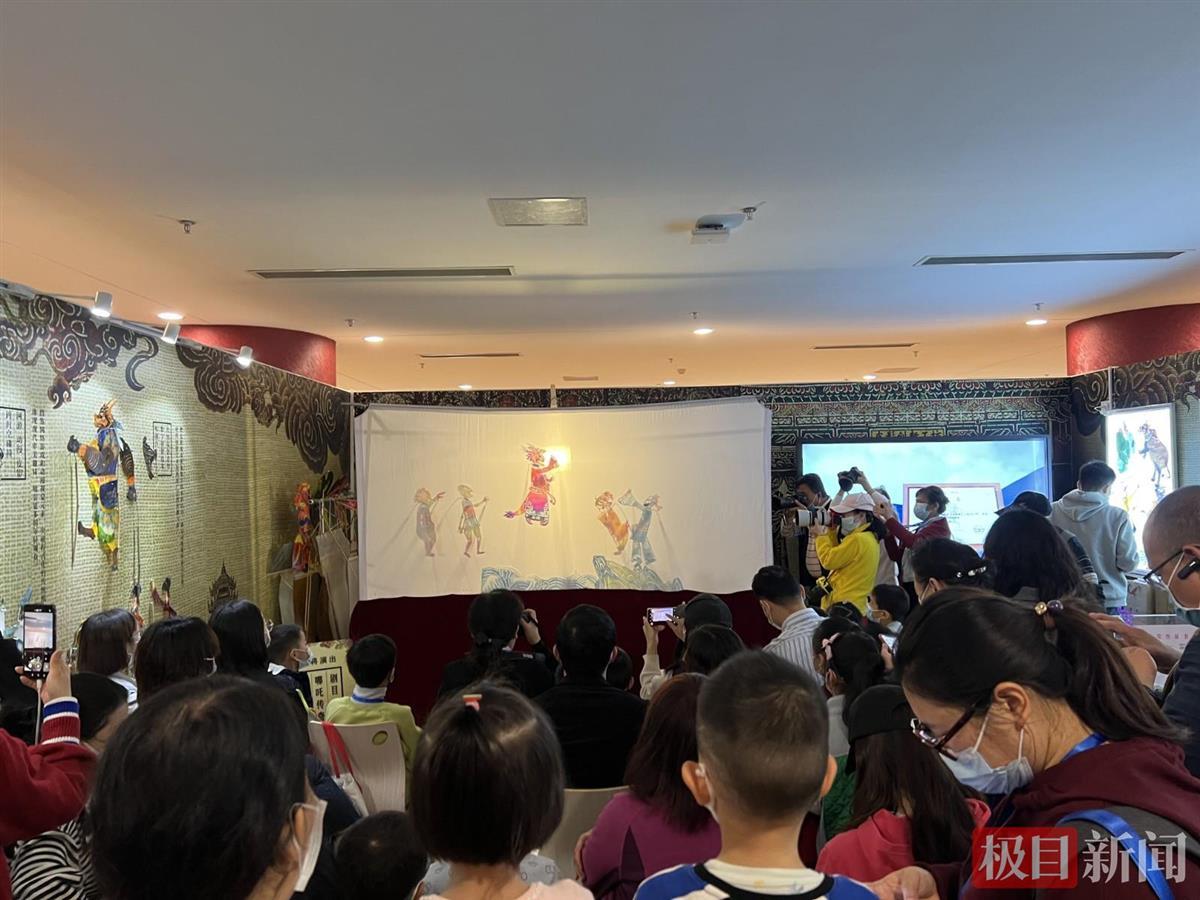极目新闻记者在活动现场看到,在中南民族大学带来的皮影戏表演现场,一出《哪吒闹海》的表演吸引了不少大朋友和小朋友。看完表演,不少年轻市民走到幕后,拿起皮影“演”了起来。