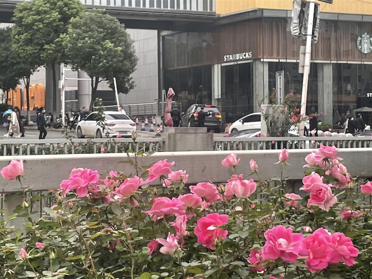 寒潮来临前,街头月季营造“仙境”