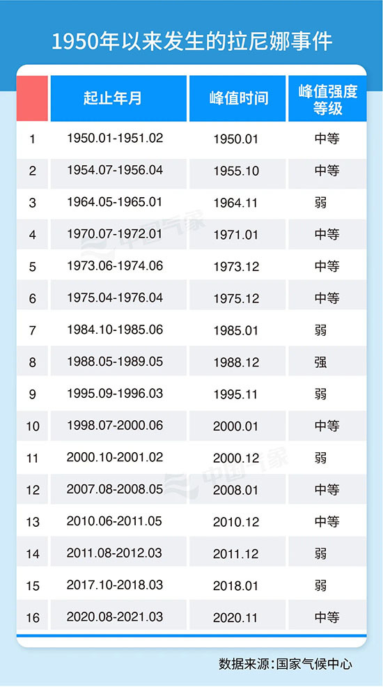 什么是“拉尼娜”事件?贾小龙介绍,拉尼娜事件是指赤道中、东太平洋海表温度异常出现大范围偏冷且强度和持续时间达到一定条件的冷水现象。