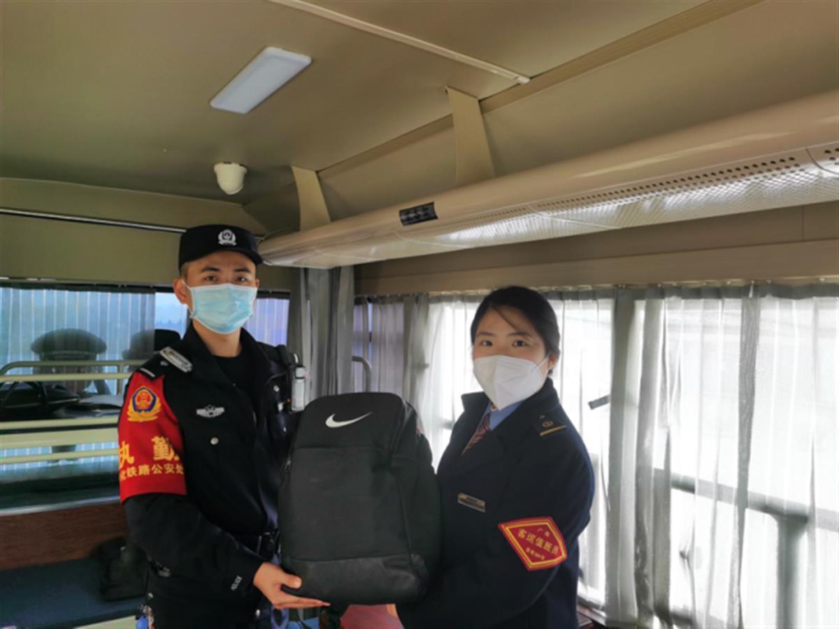 次日,C9123列车员在拿到由车站值班员转交的背包后,向民警连连道谢,称赞民警这么快就将自己丢失的背包找了回来。