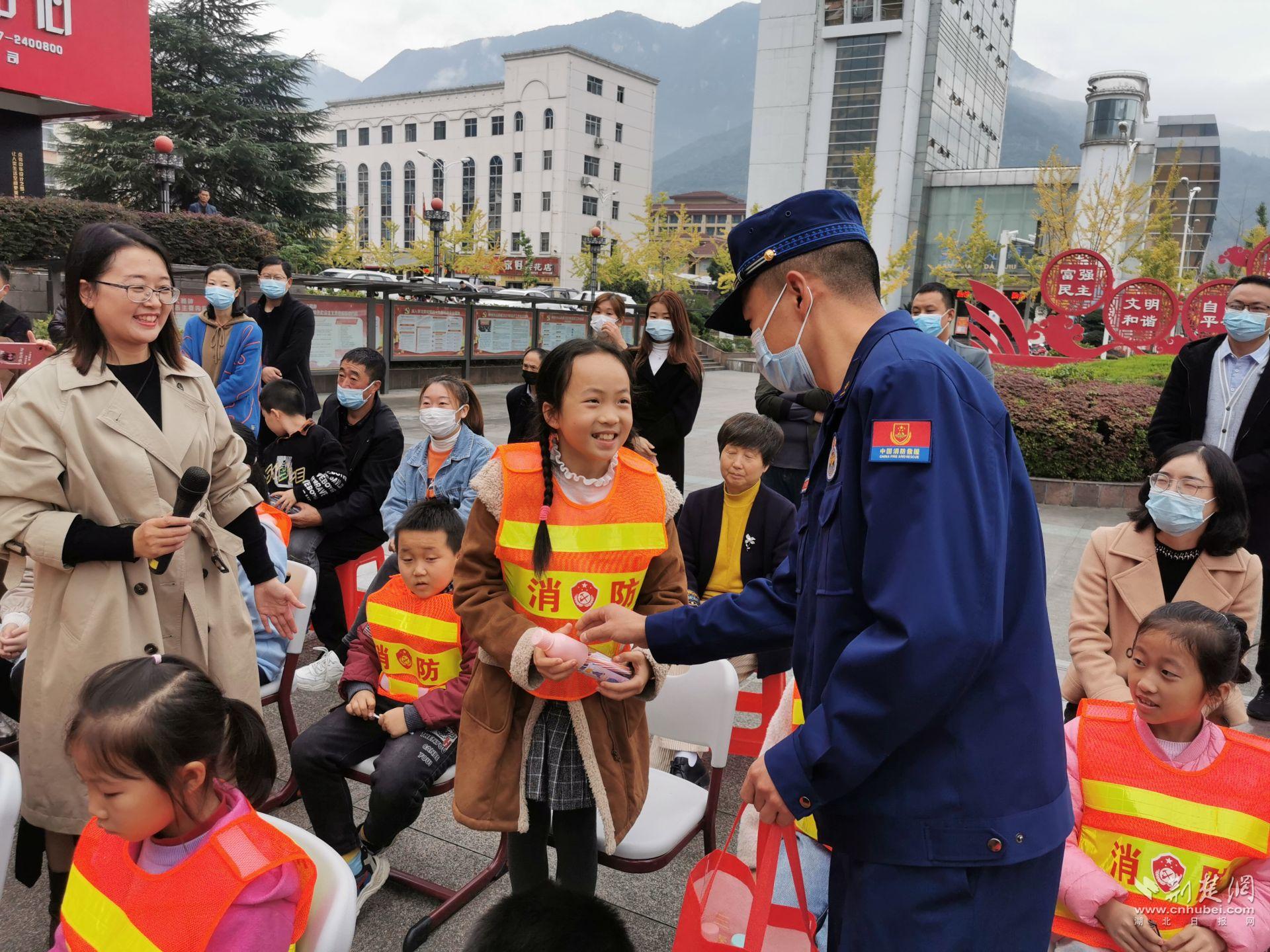 消防员叔叔给“小小消防员”分发奖品。通讯员 供图