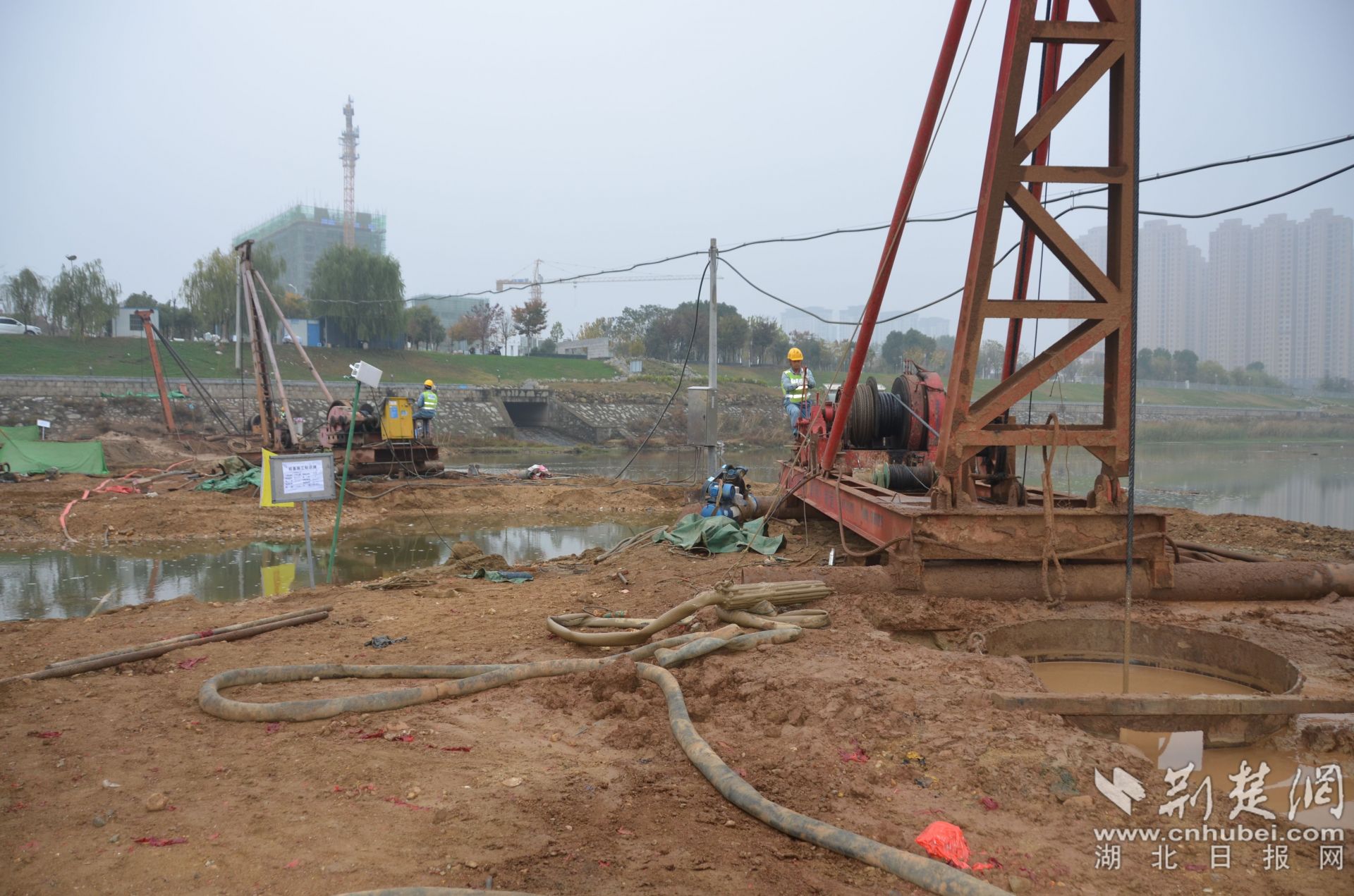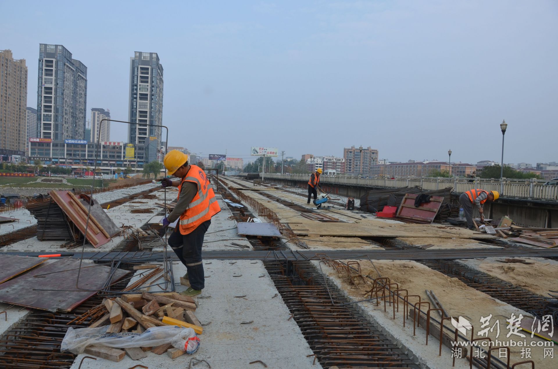 大悟澴河三桥建设施工现场。通讯员易荣波 供图