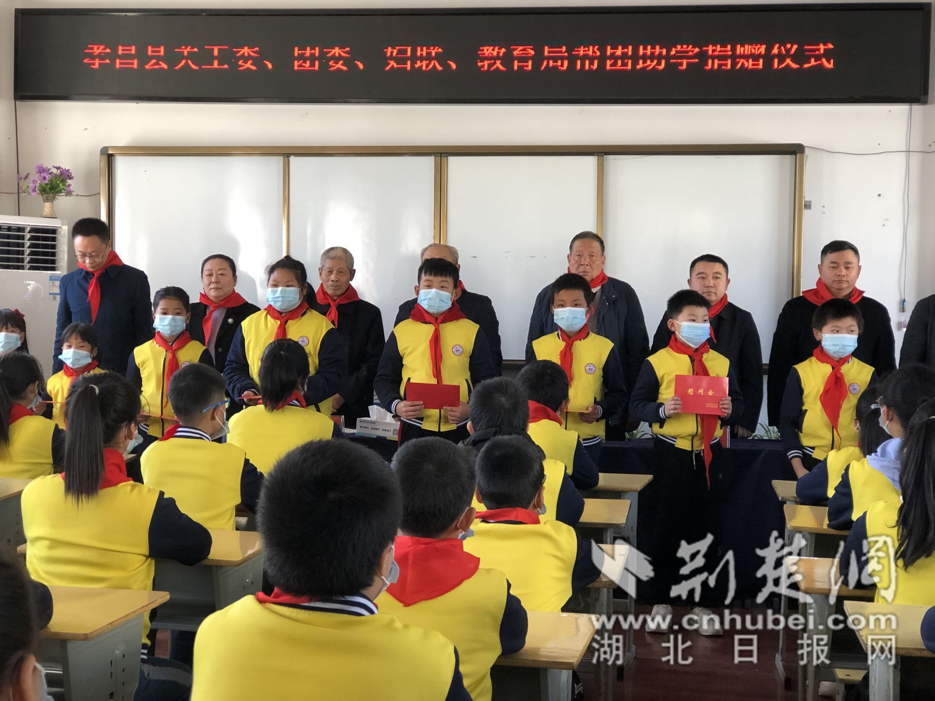 活动前期,王店镇党委镇府联合王店镇各中、小学组织摸排出20名困难学生和40名品学兼优的学生,前来参加今天的受捐活动。