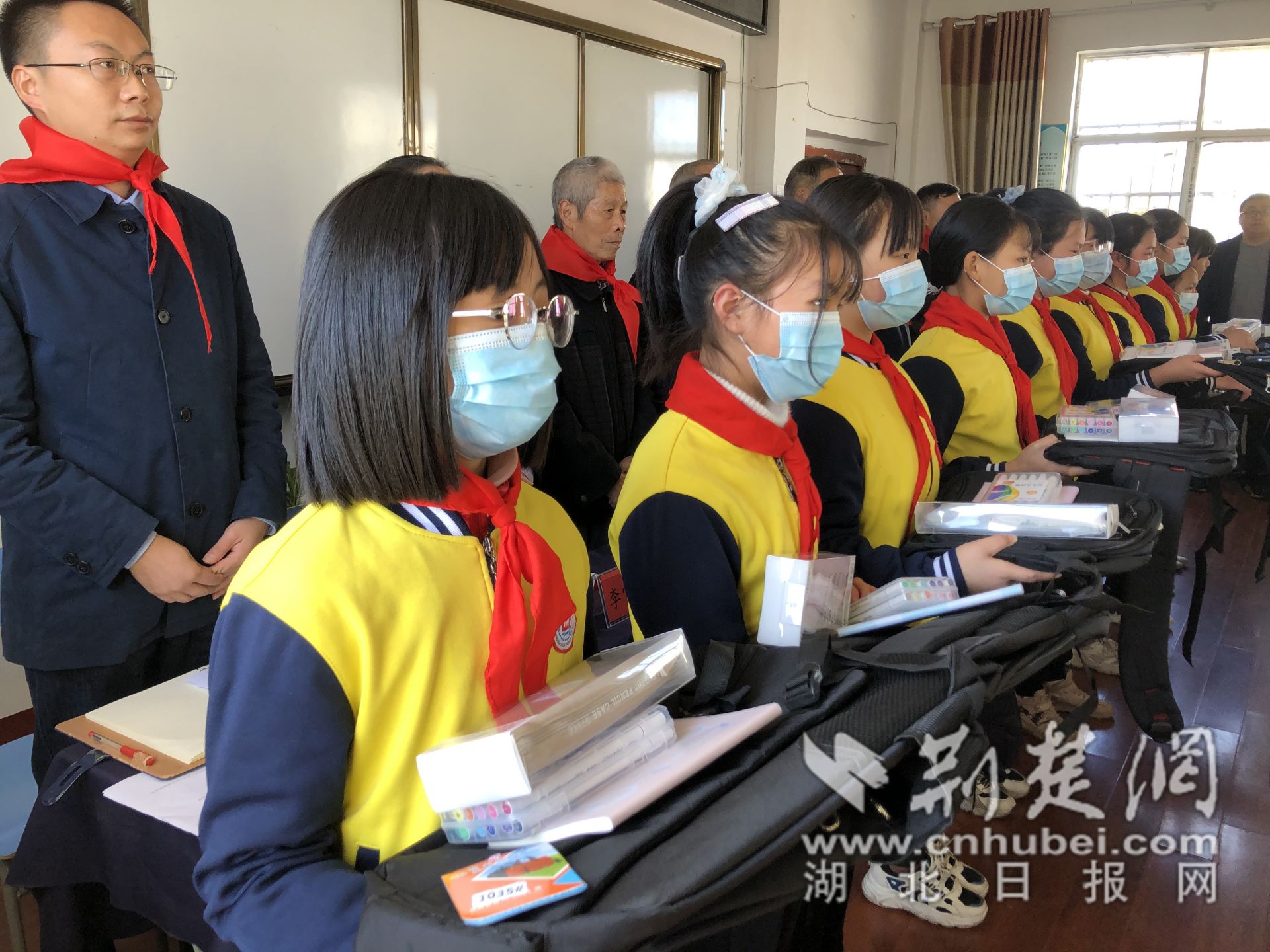 学生代表向参与活动人员献上红领巾,敬了一个坚定的注目礼后,王店镇党委副书记汪祥斌说到:“学生是祖国的花朵,是我们中华民族未来的希望,今天的捐赠和帮扶是一份爱心传递,希望未来你们走上工作岗位后,能将这份爱传递下去,让我们的祖国更加繁荣昌盛。”
