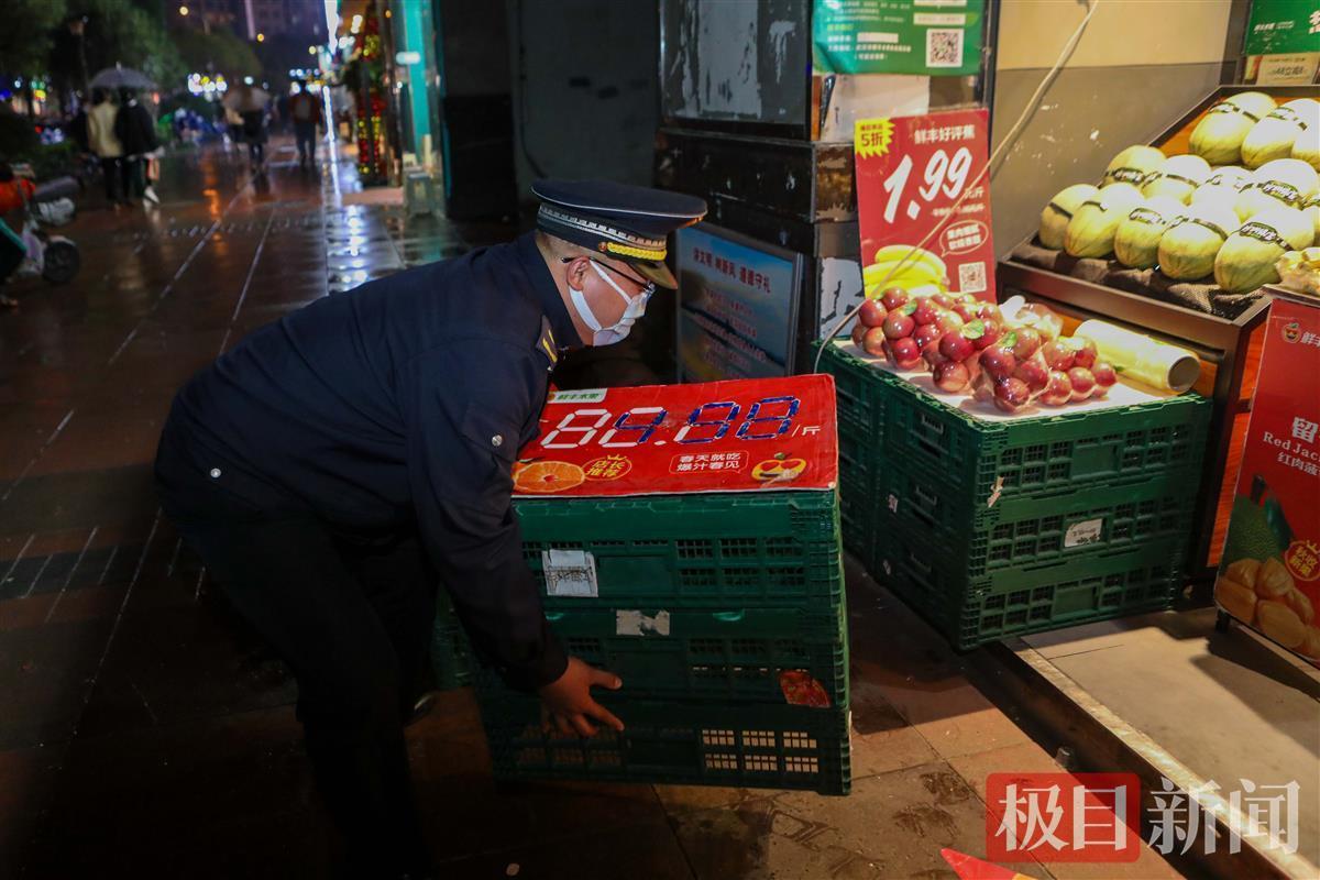 连日来,洪山区、东湖风景区两个区城管执法队伍还在铁机路、欢乐大道、联盟路、华电小路开展插花地带出店占道夜间整治行动,现场查处违法占道、出店经营行为。